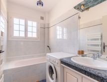 2 rom leilighet 45 m2 i 1st etasje. Praktiskt og vakkert møbler: stue/spisestue med, 1 dobbel sovesoffa (140 cm, lengde 190 cm), TV (flatskjerms TV). 1 rom med, 1 dobbeltseng (140 cm, lengde 190 cm). Kjøkkenkrok (oppvaskmaskin, 2 keramiske kokeplater, mikrobølgeovn, frys, elektrisk kaffemaskin). Bad, sep. WC. El-oppvarming. Balkong 12 m2. Balkongmøbler. God utsikt av havet. Fasiliteter: vaskemaskin, hårføner. Internett (trådløs LAN [WLAN], gratis). Garasje plass nr 51, høyde 200 cm, bredde 240 cm. Vennligst merk: max kjæledyr / hund tillatt 1 kjæledyr / hund tillatt. Bare TV FR. Røykvarsler. Tilbud fra en privatperson i henhold til art. 155, IV av CGI. Et badekar er tilgjengelig. Eiendommen er helt inngjerdet. En oppvaskmaskin er tilgjengelig.- fasiliteter
