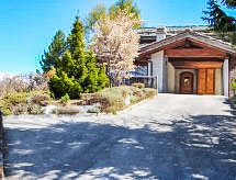 "Belle Vue", 4 rom hytte 180 m2 på 2 etasjer. Romlig og lys, delvis, med skråtak, meget komfortabelt og vakkert møbler: inngang. Utgang til verandraen. Stor stue/spisestue med på etasjer panoramavindu med, åpen peis, satelit-TV, kabel-TV og stereoanlegg. Utgang til balkongen, til terrassen, beliggenhet mot nord og beliggenhet mot vest. 1 stort rom beliggenhet mot sør med, 1 dobbeltseng (160 cm, lengde 200 cm), bad/WC og dobbel servant. Utgang til terrassen, beliggenhet mot sør. Åpent kjøkken (ovn, oppvaskmaskin, 4 keramiske kokeplater, mikrobølgeovn, frys, elektrisk kaffemaskin, Internet(Nespresso), ekstra, raclettegrill (chinoise)) med bar, spisebord. Sep. WC. øverste etasje: 1 rom med, 1 dobbeltseng (160 cm, lengde 200 cm), dusj/WC. 1 rom med 2 senger (80 cm lengde 200 cm), 1 dobbeltseng (160 cm, lengde 200 cm), bad/WC og dobbel servant. Balkong 20 m2, beliggenhet mot nord, stor terrasse 40 m2, beliggenhet mot vest, liten terrasse 15 m2, beliggenhet mot sør, hage 180 m2, østvendt beliggenhet. Terrassemøbler, grill, liggestoler (4). Meget vakker utsikt av fjellene. Fasiliteter: vaskemaskin, tørketrommel, strykejern, høy barnestol barneseng. Internett (trådløs LAN [WLAN], gratis). Parkeringsplass (3 Biler), høyde 220 cm. Vennligst merk: røykfritt hus. En tilknyttet idyllisk hage inviterer deg til å ligge i solen. Det er en brannkasse. En internettforbindelse er tilgjengelig. Huset er også utstyrt med en tørketrommel.- Kjennetegn ved boligen