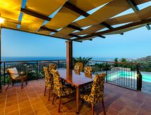 "Bellevue", 8 rom villa 240 m2 på 2 etasjer. Romlig og lys, komfortabelt og vakkert møbler: åpen stor stue/spisestue med, åpen peis, spisebord og TV (flatskjerms TV), DVD. Utgang til terrassen, til badebassenget. 1 rom med 1 seng og bad/WC. Åpent kjøkken (ovn, oppvaskmaskin, 4 keramiske kokeplater, mikrobølgeovn, elektrisk kaffemaskin, kjøkkenøy). Airconditioning. øverste etasje: (trapp uten gelender), 4 dobbelt rom, hvert rom med, 1 dobbeltseng og bad/WC. 2 rom, hvert rom med 1 seng og bad/WC. Airconditioning. Stor terrasse delvis dekt. Grill. Meget vakker panoramautsikt av havet og landskapet. Fasiliteter: vaskemaskin, strykejern, hårføner. Internett (trådløs LAN [WLAN], gratis). 1105919 Bad i huset. For din velvære, nyt boblebadet i ferier. En brannpit er tilgjengelig. Det har et privat basseng. En internettforbindelse er tilgjengelig. Ved rengjøring. En DVD-spiller er tilgjengelig.- fasiliteter
