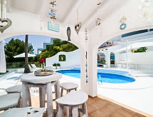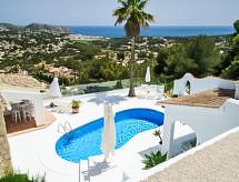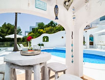 Benimeit: Enmannsbolig "Benimeit". 4 km fra sentrum av Moraira, i en roligt, solrikt, høyt posisjon, 3 km fra sjøen. Privat: tomt 840 m2 (inngjerdet), svømmebasseng uten innsyn (4 x 8 m, dybde 140- 200 cm dyp, Sesongåpent: 01.Jan. - 31.Des.). Terrasse (140 m2), hagemøbler, grillhus. Supermarked 1.5 km, restaurant 1.5 km, bar 1.5 km, sandstrand 4 km. Golfbane 8.5 km. Seiling er en imponerende måte å oppleve naturen på. Med hjelp av vindens kraft er en spesielt klimavennlig måte å gjøre en tur og mulig med oss.Interior