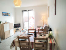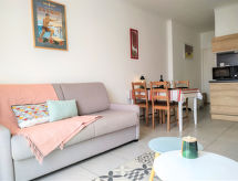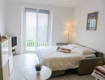 1 rom leilighet 30 m2 i 1st etasje. Passer for 2 voksne + 2 barn. Stue/spisestue med, 1 dobbel sovesoffa (1 x 140 cm, lengde 190 cm), TV (flatskjerms TV). Utgang til balkongen. Inngang med, 1 x 2 køysenger (80 cm, lengde 190 cm). Åpent kjøkken (oppvaskmaskin, 2 induksjonskomfyr, frys, elektrisk kaffemaskin, kombinert mikrobølgeovn). Dusj/WC. El-oppvarming. Balkong 5 m2, beliggenhet mot sør og, østvendt beliggenhet. Balkongmøbler. Fasiliteter: vaskemaskin, hårføner. Internett (trådløs LAN [WLAN], gratis). Parkeringsplass plass nr 13. Vennligst merk: røykvarsler. 6418900007940 Residence.- Kjennetegn ved boligen