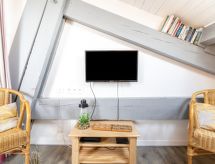 Ciboure 2 km fra Saint Jean de Luz: Residens "Berasteguia", med 2 etasjer. I sentrum av Ciboure, 1.5 km fra sjøen, 1.5 km fra stranden. Parkering nr 14. Kjøpesenter 1 km, restaurant 100 m, bakeri 200 m, café 500 m, bussholdeplass 200 m, togstasjon "Saint Jean de Luz" 1.5 km, sandstrand "Saint Jean de Luz" 2 km, termalbad "hélianthal" 3 km. Marina 1.5 km, golfbane(18 hull) 1.5 km, surfeskole 2 km, seileskole 2 km. Attraksjoner i nærheten: Navette maritime 500 m, Marché dimanche matin 500 m, Port de pêche 500 m, Activités nautiques Socoa 1.5 km. Vennligst merk: nøkkelleveringen skjer i Interhome à 16H, à 4 km. Det er flere lignende leiligheter i samme hus. Forbedre handikapet ditt med en runde golf. En fabelaktig sport som kan praktiseres av alle like. Ikke langt fra feriehuset er en golfbane.Interior