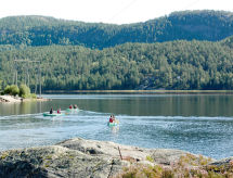 Koselig hus "Berthabu (SOW116)", 450 m.o.h. 12 km fra sentrum av Kyrkjebygd, 78 km fra sentrum av Mandal, 83 km fra sentrum av Kristiansand, 400 m fra innsjø 500 m fra skiområdet, 10 m fra elven. Privat: uberørt tomt 480 m2, trær. Terrasse (10 m2), hagemøbler, grill, parkering på tomten. Butikk 12 km, ferje "Kristiansand" 83 km. Skiheis, skibakker 500 m, skiutleie 40 km, langrensløype 500 m.Interior
