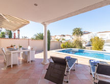 Casa al canal: Fin, komfortabel enmannsbolig "Bonica", renovert i 2017. I området Medes 1 km fra sentrum av Empuriabrava, i en roligt, solrikt posisjon boligområde, område med lite trafikk, 900 m fra sjøen, direkte ved kanalen, i en blindvei. Privat: tomt (inngjerdet) med planter og trær, svømmebasseng kantete (8 x 4 m, Sesongåpent: 01.Apr. - 30.Okt.). Utendørs dusj, sitteplass, pergola, hagemøbler. I hbrukt: airconditioning. Parkering på tomten. Supermarked 1 km, restaurant 400 m, internett café 3 km, sandstrand "La Rubina / Empuriabrava" 900 m. Sporthavn 2 km, golfbane(9 hull) 3 km, surfeskole 1.5 km, seileskole 1.5 km, tennis 1.5 km, minigolf 900 m, idrettsenter 1 km, turstier fra hbrukt 500 m, sykkelvei 100 m. Attraksjoner i nærheten: Parque Acuático Roses 5 km, Museo Dalí Figueres 12 km, Ruinas de Empuries 20 km, Castillo y Festival de Perelada 12 km, Centro de Paracaidismo y Túnel de viento 1 km, Monasterio de Sant Pere de Rodes 23 km. Vennligst merk: grupper med tenåringer- bare ved forespørsel. Privat båtplass, på forespørsel. Regionen er et populært reisemål for en morsom seilopplevelse. En golfbane finnes innen rekkevidde. Det forventer en spesiell golfutfordring. Fans av ballsporter som tennis vil finne en rekke muligheter på den eksisterende tennisbanen.Interior