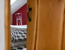 10 rom gårdshus på 3 etasjer. Romlig og lys, komfortabelt og smakfullt møbler: åpen stue med, TV, flatskjerms TV og DVD. Stue/spisestue med, TV (flatskjerms TV). 4 dobbelt rom, hvert rom med, bad. 1 dobblet rom med, 1 x 2 køysenger, 1 dobbeltseng. 1 dobblet rom med, 1 dobbeltseng. 1 dobblet rom med, 1 dobbeltseng og bad/dusj/bidèt/WC. Åpent kjøkken (4 kokeplater, ovn, mikrobølgeovn, frys) med spisebord. Bad/dusj/WC, Badstu. Oppvarming. I underetasje: spisestue med, spisebord og TV (flatskjerms TV). 1 dobblet rom med, 1 dobbeltseng og bad. Stort, åpent kjøkken (4 kokeplater, ovn, oppvaskmaskin, mikrobølgeovn, frys, grill). Badstu. Oppvarming. øverste etasje: 1 dobblet rom med 2 senger, 1 dobbeltseng og bad/dusj/WC. 1 dobblet rom med, 1 dobbeltseng og bad. Stue med, TV (flatskjerms TV), DVD og vedovn. Bad/dusj/WC. Oppvarming. Terrassemøbler, grill. Vakker utsikt av landskapet. Fasiliteter: vaskemaskin, tørketrommel. Internett (trådløs LAN [WLAN], gratis). Vennligst merk: røykfritt hus. Kjæledyr/små hunder tillatt 5 kjæledyr/små hunder tillatt. Eieren forbyr røyking i bygningen. Ta bare hunden din med deg i stedet for å overlevere den til slektninger eller til kjæledyret pensjonat. Fordi din firbente venn er velkommen her. Den fantastiske hagen lover uforglemmelige ferier. Egnet for grilling. En badstue er tilgjengelig. Den har et trådløst lokalnettverk (WLAN). En tørketrommel er tilgjengelig. En DVD-spiller er tilgjengelig. En mikrobølgeovn er tilgjengelig.- Kjennetegn ved boligen