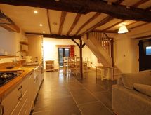 3 rom hytte på 2 etasjer. Romlig og lys, komfortabelt og smakfullt møbler: åpen stue med, TV, flatskjerms TV, DVD og vedovn. Åpent kjøkken (4 kokeplater, ovn, oppvaskmaskin, mikrobølgeovn, frys) med spisebord. Dusj/WC. Oppvarming. øverste etasje: 1 dobblet rom med, 1 dobbeltseng og dusj/WC. 1 dobblet rom med, 1 dobbeltseng. Bad/dusj/WC. Oppvarming. Vakker utsikt av landskapet. Fasiliteter: vaskemaskin, tørketrommel. Internett (trådløs LAN [WLAN], gratis). Vennligst merk: røykfritt hus. Kjæledyr/små hunder tillatt 2 kjæledyr/små hunder tillatt. I den idylliske hagen kan du nyte rekreasjon som en naturopplevelse. Den har en veranda. Huset er også utstyrt med peis. En tørketrommel er tilgjengelig. Den har en DVD-spiller. Huset er også utstyrt med en ovn.- fasiliteter