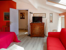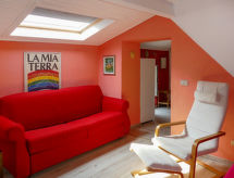 2 rom leilighet 55 m2 i 2nd etasje. Stue/spisestue med, TV. 1 dobblet rom. Gjennomgangsrom med, 1 sovesoffa. Kjøkkenkrok (4 kokeplater, ovn, brødrister, vannkoker). Bad/bidé/WC. El-oppvarming. Oppvarming kun tilgjengelig fra 15.10. til 30.04. Vakker panoramautsikt av landskapet og elven. Fasiliteter: vaskemaskin, høy barnestol barneseng, hårføner. Internett (trådløs LAN [WLAN]). CITRA 008032-LT-0006 Et badekar er tilgjengelig. Du er mer selvstendig med den spesielle vaskemaskinen.- fasiliteter