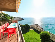 Cap Salou 8 km fra Cambrils: Leilighetshus "Cala d'Or". I en roligt, solrikt posisjon, 5 m fra sjøen, direkte tilgang til stranden. Overdekket, parkering nr 16. Butikk, daglivarehandel, bakeri 500 m. Attraksjoner i nærheten: Port Aventura / Ferrari Land 3 km, Aquum Spa 3 km, Aquopolis 3 km, Cambrils 8 km. Turstier La Mussara 45 km. Grupper med tenåringer- bare ved forespørsel. Bare surf igjen på en positiv bølge? Stedet inviterer til bølgetur. Utflukter med hester gir deg muligheten til å komme nær landet og dets folk. Hva synes du om en liten tur? Ta barns øyne til liv med et besøk til fornøyelsesparken.Interior