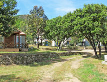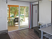 "Cala di Sole (ALG134)", 3 rom bungalow 35 m2. Praktiskt og moderne møbler: stue/soverom med, 1 sovesoffa, spisebord, TV og el-radiator. Utgang til terrassen. 1 rom med, 1 dobbeltseng og dusj. Utgang til terrassen. 1 rom med 2 senger. Kjøkkenkrok (oppvaskmaskin, 4 gassbrennere, vannkoker, mikrobølgeovn, frys, elektrisk kaffemaskin). Sep. WC. Airconditioning. Terrasse delvis dekt. Terrassemøbler. Vennligst merk: røykfri bolig. Brannslukkningsapparat. Røyking er ikke tillatt. En oppvaskmaskin er tilgjengelig. For å forberede noe raskt selv, er en mikrobølgeovn klar.- fasiliteter