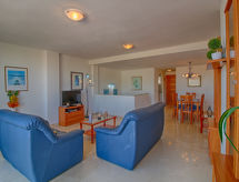 "Cala Manzanera", 3 rom leilighet 90 m2 på 2 etasjer. Romlig, praktiskt og komfortabelt møbler: stue/spisestue med, digital TV, air-conditioning og varmluft oppvarming. Utgang til terrassen. 1 rom med, 1 dobbeltseng. 1 rom med 2 senger. Kjøkken (ovn, oppvaskmaskin, 4 keramiske kokeplater, brødrister, vannkoker, mikrobølgeovn, elektrisk kaffemaskin). Bad/WC. Stor terrasse. Terrassemøbler. Utsikt av havet og området. Fasiliteter: vaskemaskin, strykejern, høy barnestol barneseng, hårføner. Internett (trådløs LAN [WLAN], gratis). Parkeringsplass. AT-440332-A Bad i huset. Dessuten er de bortskjemt med en klar utsikt over havet. Huset er også utstyrt med et barnebasseng. En vaskemaskin er tilgjengelig for bruk. For å forberede noe raskt selv, er en mikrobølgeovn klar.- fasiliteter
