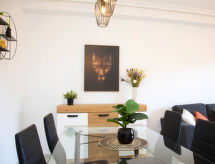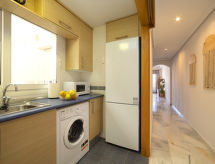Fin leilighetshus "Calpe Bay", med 4 etasjer. 400 m fra sentrum av Calpe, i en sentrale, høyt posisjon, 700 m fra sjøen, 700 m fra stranden. Fellesbruk: 1 badebasseng (20 x 5 m, Sesongåpent: 01.Jan. - 31.Des.) med innbygdetrapper. Barnebasseng, utendørs dusj. I hbrukt: heis. Supermarked 170 m, restaurant 50 m, café 20 m, sandstrand "Playa Arenal" 700 m. Sporthavn 3 km, marina 3 km, tennis 1.8 km. Attraksjoner i nærheten: Aqualandia, Mundomar, Terra Mítica, Terra Natura, Benidorm Palace (Benidorm), Les Fonts de l'Algar. Eiendommen ligger i et attraktivt seilområde. Nyt den behagelige lokasjonen med vindkraft.Interior