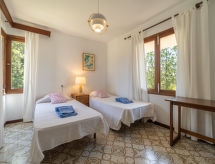 "Can Jeroni", 5 rom hus 163 m2 i 1st etasje. Passer for. Romlig og lys: stor stue med, digital TV og flatskjerms TV. Utgang til balkongen. Stor spisestue med panoramavindu med, spisebord. Utgang til balkongen. 1 stort dobblet rom med panoramavindu med, 1 dobbeltseng (150 cm, lengde 190 cm), air-conditioning og varmluft oppvarming. 1 stort dobblet rom med panoramavindu med, 1 dobbeltseng (135 cm, lengde 190 cm), air-conditioning og varmluft oppvarming. 1 stort dobblet rom med panoramavindu med 2 senger (90 cm lengde 190 cm), air-conditioning og varmluft oppvarming. 1 rom med panoramavindu med 1 seng (90 cm lengde 190 cm). Kjøkken/stue (ovn, oppvaskmaskin, 3 keramiske kokeplater, brødrister, vannkoker, mikrobølgeovn, frys, elektrisk kaffemaskin) med spisebord. Utgang til sitteplass i hagen. Bad/bidé/WC, dusj/WC. Stor balkong, stor sitteplass i hagen, plen, lysthus. Terrassemøbler, balkongmøbler grill, liggestoler, overbygd balkong lager. Utsikt av området. Fasiliteter: vaskemaskin, strykejern, høy barnestol barneseng for barn opp til 2 år, hårføner. Internett (trådløs LAN [WLAN], gratis). Parkeringsplass. ETV11431 Selv om det forblir så varmt om natten, er det fint, du kan skru på klimaanlegget og sove i et hyggelig, temperert inneklima. Huset er også utstyrt med veranda. Det er en barneseng.- Aktiviteter i nærheten
