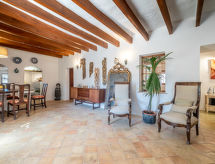 Meget stor, koselig gårdshus "Can Lloret", med 2 etasjer, omgitt av jorder. Utenfor området, 4.5 km fra sentrum av Algaida, i en roligt, solrikt posisjon, 20 km fra stranden, i det grønne. Privat: uberørt tomt 18'000 m2, hage med planter, svømmebasseng kantete (9 x 5 m, dybde 150- 150 cm dyp, Sesongåpent: 15.Mar. - 15.Okt.). Utendørs dusj, sitteplass, lysthus, pergola, hagemøbler, grill. I hbrukt: internetilkobbling, trådløst LAN [WLAN], sykkelrom, vaskemaskin. Tilgang med bil hele veien (naturvei). Parkering ved hbrukt på tomten. Butikk 4.5 km, supermarked 4.3 km, kjøpesenter 20 km, restaurant 4.3 km, bar 4.2 km, bakeri 4.5 km.minutters gange til sentrum 55, bussholdeplass 4.5 km, sandstrand "Can Pastilla" 20 km. Sporthavn 20 km, golfbane 15 km. Attraksjoner i nærheten: Algaida, El Arenal, Can Pastilla, Llucmajor, Montuiri, Porreres, Aqualand Parque Acuático. Vennligst merk: bil anbefales. Velegnet for barnefamilier. Passer for 8 voksne. Eieren godtar ikke noen ungdomsgrupper. Dyr i nabolaget.Interior