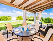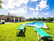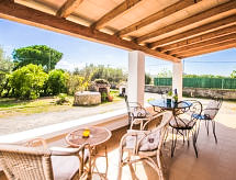 "Can Mateu", 4 rom hus 140 m2. Komfortabelt og træ møblement møbler: stue/spisestue med, spisebord, satelit-TV og flatskjerms TV. Utgang til terrassen. 2 rom, hvert rom med 2 senger (90 cm lengde 190 cm), el-radiator og vifte. 1 rom med, 1 dobbeltseng (160 cm, lengde 200 cm), bad/bidèt/WC, el-radiator og vifte. Kjøkken (4 kokeplater, ovn, oppvaskmaskin, brødrister, vannkoker, mikrobølgeovn, elektrisk kaffemaskin) med spisebord, vannkoker (100 liter). Utgang til hagen. Dusj/WC. Terrasse dekt. Terrassemøbler. Fasiliteter: vaskemaskin, tørketrommel, strykejern, høy barnestol barneseng for barn opp til 3 år, hårføner. Internett (trådløs LAN [WLAN], gratis). 45835713 Et sted for avslappende ferier for soling og lesing i hagen. En veranda er tilgjengelig. Det har et privat basseng. En tørketrommel er tilgjengelig.- Aktiviteter i nærheten