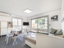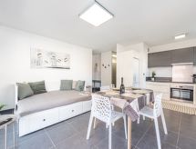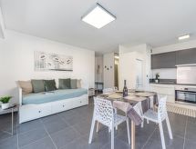 2 rom leilighet 45 m2 i 1st etasje. Komfortabelt og vakkert møbler: stue/spisestue med, 1 dobbel sovesoffa (140 cm, lengde 190 cm), TV (flatskjerms TV). Utgang til terrassen. 1 rom med, 1 dobbeltseng (140 cm, lengde 190 cm), bad. Kjøkken (ovn, oppvaskmaskin, 3 keramiske kokeplater, brødrister, vannkoker, mikrobølgeovn, elektrisk kaffemaskin, Internet(TASSIMO), ekstra). Sep. WC. Airconditioning. Terrasse 14 m2, beliggenhet mot sør. Terrassemøbler, grill. Utsikt av landskapet. Fasiliteter: vaskemaskin, strykejern. Internett (trådløs LAN [WLAN], ekstra). Parkeringsplass plass nr 15. Vennligst merk: røykvarsler. 00703083036220132 Residence. Et badekar er tilgjengelig. Praktisk med heisen til inngangsdøren. Selv om det forblir så varmt om natten, er det fint, du kan skru på klimaanlegget og sove i et hyggelig, temperert inneklima. Takket være vaskemaskinen finner du mindre klær å bære.- Kjennetegn ved boligen