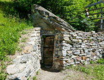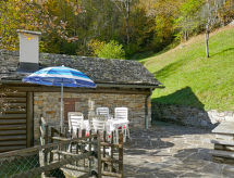 "Casa Angela", 4 rom hytte. Praktiskt og rustikt møbler: åpen stue/spisestue med, åpen peis, spisebord og satelit-TV. Utgang til terrassen. 1 rom med, 1 x 1 køysenger (80 cm, lengde 200 cm). Åpent kjøkken (4 kokeplater, vannkoker, mikrobølgeovn, elektrisk kaffemaskin, Internet(Nespresso) (ost)). Utgang til terrassen. Bad/WC. El-oppvarming, vedoppvarming. øverste etasje: (bratt trapp), 1 dobblet rom med, 1 dobbeltseng (2 x 80 cm, lengde 200 cm). 1 rom med 2 senger (80 cm lengde 200 cm). Stor sitteplass i hagen. Grill (flyttbar), liggestoler. Meget vakker utsikt av fjellene, dalen og skogen. Fasiliteter: høy barnestol barneseng for barn opp til 2 år (ekstra), hårføner. Vennligst merk: røykfritt hus. Kjæledyr / hund tillatt 1 kjæledyr / hund tillatt. Brannslukkningsapparat. Det er et røykeforbud i huset. Det blir bedt om å holde fast ved det. Takk Husdyr er tillatt i denne innkvarteringen, så din firbente venn vil føle seg hjemme. En veranda er tilgjengelig.- fasiliteter