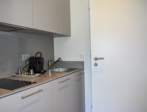 "Studio Balcony Valleyview", 1 rom etromsleilighet 15 m2. Lys, komfortabelt og moderne møbler: åpen stue/soverom med, 1 sovesoffa (160 cm, lengde 200 cm), kabel-TV, internasjonale TVkanaler og flatskjerms TV. Utgang til balkongen. Lite kjøkken (oppvaskmaskin, 2 keramiske kokeplater, elektrisk kaffemaskin, Internet(Nespresso), ekstra) med spisebord. Dusj/WC. Liten balkong. Balkongmøbler. Hærlig panoramautsikt av fjellene, dalen og landskapet. Fasiliteter: vaskemaskin, hårføner. Internett (trådløs LAN [WLAN], ekstra). Vennligst merk: røykfri bolig. Max 1 lite kjæledyr / liten hund tillatt. For å tilfredsstille behovene til våre gjester er det også en restaurant tilgjengelig. Frokost serveres eventuelt. En balkong er tilgjengelig. Det er en veranda.- fasiliteter
