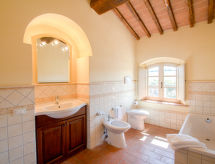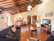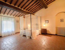 Former, recently renovated stone farmhouse, located within a large farm residence. Now the main building is divided into 3 large apartments which have still retained their original, special, architectural style with terracotta floors and wooden ceilings. All apartments are on the first floor and on one side, there is view of the countryside, on the other side, there is a view of the paved outside area and also the swimming pool. Guests can walk in the grounds, cycle and fish in one of the two large lakes or just relax in the garden. Familievennlig, enkel, komfortabel hus på gård fra det 18th århundre, renovert, omgitt av trær og jorder. 9 km fra sentrum av Colle Val d'Elsa, 3 km fra sentrum av Casole d'Elsa, 20 km fra sentrum av San Gimignano, i en roligt posisjon ved en høyde, i det grønne. Fellesbruk: tomt, 1 badebasseng (7 x 15 m, dybde 120- 160 cm dyp, Sesongåpent: 08.Mai. - 02.Okt.) med innbygdetrapper. Utendørs dusj, grill. I anlegget: resepsjon, sentralvarme, vaskemaskin (for felles bruk ekstra), oppvarming betales lokalt (01.11. - 15.04.), oppvarming kun tilgjengelig fra 01.11. til 15.04.. Romrengjøring på forespørsel (ekstra). Parkering ved hbrukt på tomten. Butikk 3 km, daglivarehandel 3 km, supermarked 9 km, restaurant 3 km, togstasjon "Poggibonsi" 20 km. Tennis 15 km, rideskole 15 km. Vennligst merk: bil anbefales. Bildet er et eksempel. Det er flere lignende leiligheter i samme hus.Interior
