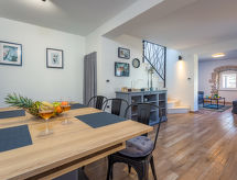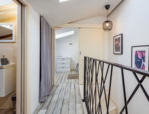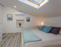3 rom halvpart av tomannsbolig 80 m2 på 2 etasjer. Vakkert møbler: stue/spisestue med, 1 dobbel sovesoffa (160 cm, lengde 200 cm), satelit-TV (flatskjerms TV), air-conditioning. Utgang til balkongen. Åpent kjøkken (ovn, oppvaskmaskin, 4 keramiske kokeplater, brødrister, vannkoker, mikrobølgeovn, frys, elektrisk kaffemaskin). Dusj/WC. Toppetasje: 1 rom med skråtak Lav dørhøyde 140 cm 240 cm med takvindu med, 1 dobbeltseng (180 cm, lengde 200 cm), air-conditioning. 1 rom med skråtak Lav dørhøyde 140 cm 240 cm med takvindu med 2 senger (90 cm lengde 200 cm), air-conditioning. Sep. WC. Varmluftsoppvarming. Balkong 6 m2. Balkongmøbler, liggestoler (4). Fasiliteter: strykejern, høy barnestol barneseng. Internett (trådløs LAN [WLAN], gratis). Vennligst merk: max kjæledyr / hund tillatt 1 kjæledyr / hund tillatt. Brannslukkningsapparat. Nyt dusjet og lukter du kan slappe av på ferien programmet, fordi en dusj er tilgjengelig. En balkong er tilgjengelig. Passer til grill. Det er en barneseng. Det er en oppvaskmaskin. Et privat basseng er tilgjengelig. Finn ut om det eksisterende TV-apparatet. Om lokale nyheter eller internasjonale nyheter, med fjernsynet er du alltid godt informert.- fasiliteter