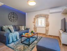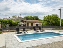 Dobbelthus "Casa Hamara", med 2 etasjer, renovert i 2021. I det lille tettstedet Runki 3 km fra sentrum av Pićan, 25 km fra sentrum av Rabac, 25 km fra sjøen. Privat: tomt 500 m2 med planter og trær, svømmebasseng kantete (7 x 3 m, dybde 150 cm, Sesongåpent: 01.Mai. - 01.Okt.). Utendørs dusj, terrasse (8 m2), hagemøbler, grill, Underholdning av bassenget av eieren/gartneren. I hbrukt: internetilkobbling, vaskemaskin. Parkering (for 2 biler) ved hbrukt på tomten. Butikk 3 km, supermarked 3 km, restaurant 3 km, småstenstrand 25 km.Interior