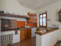 "Casetta", 3 rom leilighet 90 m2 i 1st etasje. Vakkert og koseligt møbler: stue/spisestue med, åpen peis (kun til dekorasjon), spisebord og TV. Utgang til terrassen. 1 rom med, 1 dobbeltseng (160 cm). 1 rom med 2 senger (80 cm). Kjøkkenkrok (ovn, oppvaskmaskin, 4 gassbrennere, mikrobølgeovn, frys, elektrisk kaffemaskin). Dusj/WC. Gassoppvarming. Terrasse 12 m2, sitteplass i hagen. Terrassemøbler. Vakker utsikt av landskapet og skogen. Fasiliteter: høy barnestol barneseng. Internett (trådløs LAN [WLAN], gratis). Vennligst merk: røykfri bolig. Max 1 lite kjæledyr / liten hund tillatt. Egen inngang. Det er et røykeforbud i huset. Det blir bedt om å holde fast ved det. Takk Huset er også utstyrt med en terrasse. En veranda er til stede.- fasiliteter