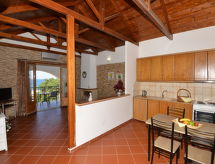 "Castello Domus", 2 rom leilighet 65 m2 i 1st etasje. Lys, enkelt og komfortabelt møbler: åpen stue med, 1 sovesoffa og satelit-TV (flatskjerms TV), air-conditioning. Utgang til terrassen. 1 rom med, 1 dobbeltseng og air-conditioning. Utgang til balkongen. Åpent kjøkken (4 kokeplater, ovn, elektrisk kaffemaskin) med, spisebord. Dusj/WC. Liten balkong, liten terrasse. Terrassemøbler, balkongmøbler. Vakker utsikt av havet. Fasiliteter: vaskemaskin, safe, strykejern, hårføner. Internett (trådløs LAN [WLAN], gratis). 1041Κ132Κ3105801 Gir spektakulær utsikt over havet. Ved rengjøring.- fasiliteter