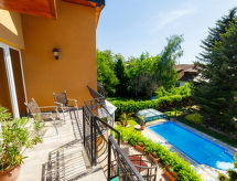 Balatonlelle: Koselig tomannsbolig "Szabo". I området, 1.8 km fra innsjø. Fellesbruk: hage 500 m2 (inngjerdet). Privat: svømmebasseng kantete (2 x 4 m, dybde 150 cm, Sesongåpent: 15.Mai. - 15.Okt.). I hbrukt: trådløst LAN [WLAN], airconditioning. Daglivarehandel 1.2 km, kjøpesenter 2 km, restaurant 1.5 km, sandstrand 1.8 km. Eieren bor i en enebolig.Interior