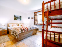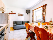 2 rom leilighet 40 m2, i forhøyet bunnetasje. Enkelt møbler: stue/spisestue med, spisebord og TV (flatskjerms TV). Utgang til hagen. 1 dobblet rom med, 1 x 2 køysenger. Kjøkkenkrok (4 kokeplater, stekeovn). Dusj/bidé/WC. Utsikt av fjellene og dalen. Fasiliteter: hårføner. Vennligst merk: røykfri bolig. Kjæledyr / hund tillatt 1 kjæledyr / hund tillatt. CIPAT:022039-AT-011484 En barneseng er tilgjengelig.- fasiliteter