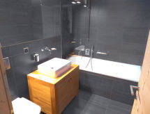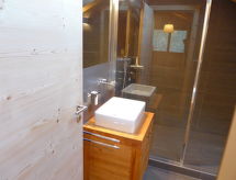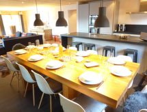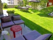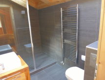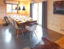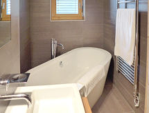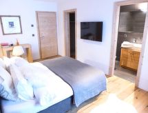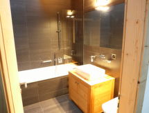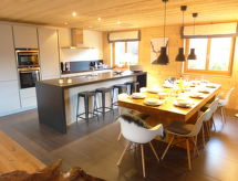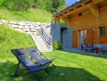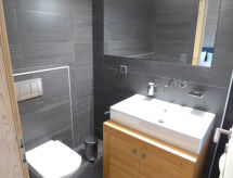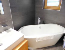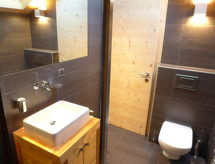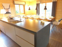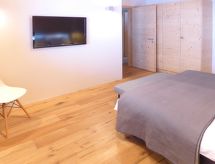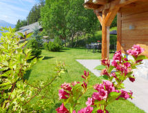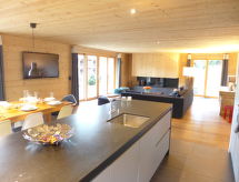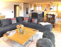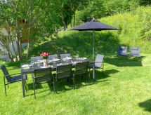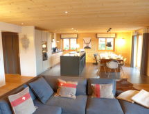 6 rom hytte 230 m2. Romlig, meget komfortabelt og træ møblement møbler: stue/spisestue med, åpen peis, separat WC, kabel-TV og motoriserte persienner. Utgang til hagen, beliggenhet mot sør. 1 rom med, 1 dobbeltseng (160 cm, lengde 200 cm), bad/WC og kabel-TV. Utgang til hagen, beliggenhet mot vest. Stort, åpent kjøkken (ovn, oppvaskmaskin, 4 induksjonskomfyr, brødrister, vannkoker, mikrobølgeovn, elektrisk kaffemaskin, raclettegrill (chinoise, ost)). Gassoppvarming, gulvvarme. øverste etasje: 1 rom med, 1 dobbeltseng (160 cm, lengde 200 cm), dusj/WC og kabel-TV. 2 rom, hvert rom med, 1 dobbeltseng (180 cm, lengde 200 cm), bad/WC og kabel-TV. Utgang til balkongen, beliggenhet mot sør. 1 rom med 2 senger (80 cm lengde 200 cm), dusj/WC og kabel-TV. Terrassemøbler, grill, liggestoler (2), lager. Delvis utsikt av fjellene og landskapet. Fasiliteter: strykejern, høy barnestol barneseng for barn opp til 2 år, hårføner. Internett (trådløs LAN [WLAN], gratis). Garasje (2 Biler), høyde 210 cm, bredde 515 cm. Vennligst merk: røykfritt hus. Du kan ta heisen til gulvet i leiligheten. Huset er også utstyrt med oppvaskmaskin. Det er en brannkasse. Den har en overbygd parkeringsplass. Det er en tørketrommel.- Kjennetegn ved boligen