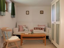 "Chalet Merymont", 4 rom hytte 110 m2 på 3 etasjer, beliggenhet mot sør. Komfortabelt og koseligt møbler: stue/spisestue med, bibliotek, TV og internasjonale TVkanaler (flatskjerms TV), DVD. Utgang til balkongen, beliggenhet mot sør. Åpent kjøkken (stekeovn, oppvaskmaskin, 4 keramiske kokeplater, brødrister, vannkoker, mikrobølgeovn, frys, elektrisk kaffemaskin, Internet(Nespresso), ekstra, raclettegrill (ost)). I underetasje: 1 rom med 2 senger (90 cm lengde 200 cm), 1 sovesoffa. Dusj/WC. øverste etasje: 2 rom, hvert rom med, 1 dobbeltseng (180 cm, lengde 200 cm). Sep. WC, bad/dusj/WC. Stor balkong, beliggenhet mot sør, stor hage 600 m2, beliggenhet mot sør. Terrassemøbler, balkongmøbler grill (flyttbar). Meget vakker panoramautsikt av fjellene og hagen. Fasiliteter: vaskemaskin, tørketrommel, telefon, strykejern, hårføner. Internett (trådløs LAN [WLAN], gratis). Parkeringsplass, garasje i 50 m. Vennligst merk: røykfritt hus. Røykvarsler, brannslukkningsapparat. Røyking er mot husregler. Egnet for grilling. Den har oppvaskmaskin. Den har en parkeringsplass. Ved rengjøring. Den har en DVD-spiller.- fasiliteter