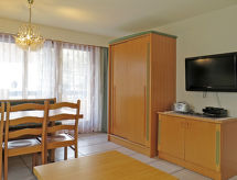 3 rom leilighet 55 m2, i øverste etasje. Koseligt møbler: stue/spisestue med, 2 sovesoffaer, spisebord og satelit-TV (flatskjerms TV), radio og DVD. Utgang til balkongen. 1 dobblet rom. 1 dobblet rom med, vaskeservant. Åpent kjøkken (3 kokeplater, ovn, vannkoker, mikrobølgeovn, elektrisk kaffemaskin (ost)). Badekar/WC eller dusj/WC. Oljeoppvarming. Balkong, beliggenhet mot sør. Balkongmøbler, liggestoler (2). Panoramautsikt av fjellene og området. Fasiliteter: Internett (trådløs LAN [WLAN], gratis). Vennligst merk: røykfri bolig. Det er en DVD-spiller.- Kjennetegn ved boligen
