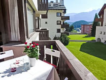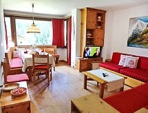 "Chesa Arlas D2", 3 rom leilighet 70 m2 i 2nd etasje. Lys, komfortabelt og koseligt møbler: stue/spisestue med, TV (flatskjerms TV), DVD. Utgang til balkongen. 1 dobblet rom med, 1 dobbeltseng (2 x 90 cm, lengde 200 cm). 1 rom med, 1 x 2 køysenger (80 cm, lengde 190 cm). Lite kjøkken (3 kokeplater, ovn, oppvaskmaskin, brødrister, vannkoker, mikrobølgeovn, elektrisk kaffemaskin, Internet(Nespresso), ekstra, raclettegrill). Bad/WC. Oppvarming. Tregulv. Balkongmøbler, liggestoler (1). Meget vakker panoramautsikt av fjellene og landskapet. Fasiliteter: strykejern, hårføner. Internett (trådløs LAN [WLAN], gratis). Garasje plass nr D2 på tomten (1 Bil), høyde 190 cm, bredde 210 cm. Vennligst merk: røykfri bolig, parkeringsplass bare for små biler. Et badekar er tilgjengelig. Huset er også utstyrt med barneseng. En overbygd parkering er tilgjengelig. Huset er også utstyrt med et trådløst lokalnettverk (WLAN). Det er en tørketrommel. Det er en DVD-spiller.- fasiliteter