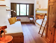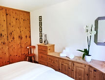 St. Moritz Bad: Komfortabel flermannsbolig "Chesa Arlas", med 4 etasjer, bygget i 1965. I en solrikt, høyt posisjon i et boligområde, 800 m fra innsjø 1.4 km fra skiområdet. I hbrukt: sentralvarme, vaskemaskin, tørketrommel (for felles bruk ekstra). Kjettinger nødvendige på vinteren, firhjulsdrift på bil anbefales. Bratt gangsti til hbrukt. Privat garasje ved hbrukt. Butikk 450 m, supermarked, restaurant, bar 400 m, bakeri, café 450 m, sykkelutleie 550 m, bussholdeplass "St Moritz Bad, Via Salet" 400 m, togstasjon 2 km, svømmehall 1 km, termalbad "Heilbadzentrum St. Moritz" 1.2 km, sjøen St. Moritzer See 800 m. Golfbane(18 hull) 7.3 km, surfeskole 5.7 km, tennis 1.5 km, tennisklubb 1.5 km, minigolf 1 km, rideskole 2.1 km, turstier fra hbrukt 800 m, sykkelvei 1 km, kabelbane 1.4 km, skiheis 1.4 km, skibakker 1.4 km, skiutleie 800 m, skibussholdeplass 400 m, skiskole 1.6 km, skiskole for barn 1.6 km, akebane 5.6 km, langrensløype 1 km, skøytebane 750 m, lekeplass 1.2 km. Attraksjoner i nærheten: Segantini Museum 1.7 km, Engadiner Museum 800 m, Mili Weber-Haus 2.9 km, Olympia Bob Run mit Museum 2.2 km, Nietzsche Museum in Sils-Maria 10 km. Velkjente skiområder: Corviglia Piz Nair 1.4 km, Corvatsch - Furtschellas 7 km, Diavolezza - Lagalb 19.7 km. Velkjente innsjøer: St. Moritzer See 800 m, Silvaplaner See 5.7 km, Silser See 10 km. Turstier Stazerwald & Stazersee, Corviglia Piz Nair, Muottas Muragl. Nøkkelleveringen skjer i Interhome i St. Moritz Bad. Hvis fjellet ringer igjen. Sankt Moritz er utgangspunktet for en rekke fantastiske turstier i fjellene. For utholdenhet anbefaler vi å gå på ski. Passende stier for langrenn er tilgjengelig. Skøyter er et flott tidsfordriv for hele familien. På den lokale isen har du muligheten. Vintersportentusiaster vil være glade for å tilbringe fritiden i perfekt preparerte og snødekte bakker i skianlegget. En skiferie i et sjarmerende vinterlandskap. Snøparker for snowboardåkere tiltrekker seg blant annet nye utfordringer, variasjoner og snowboardmoro hver dag. Akebakken i regionen gir en flott opplevelse med en fantastisk vinteratmosfære. Aktive gjester kan spille tennis på banene. Ta tak i tennisracketen for et spill med selvtillit.Interior