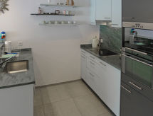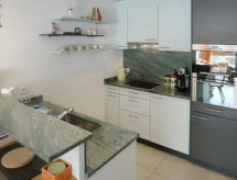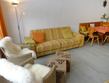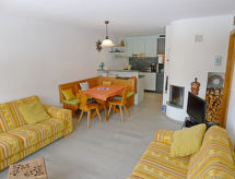 2 rom leilighet 61 m2 i 2nd etasje. Komfortabelt og koseligt møbler: stue/spisestue med, 1 dobbel sovesoffa og åpen peis (kun til dekorasjon), satelit-TV (flatskjerms TV), DVD. Utgang til balkongen. 1 dobblet rom med, dusj/WC. Utgang til balkongen. Åpent kjøkken (ovn, oppvaskmaskin, 4 keramiske kokeplater, mikrobølgeovn, elektrisk kaffemaskin, raclettegrill (ost)). Sep. WC. Gulvvarme. Balkong. Terrassemøbler. Vakker utsikt av fjellene og landskapet. Fasiliteter: Internett (trådløs LAN [WLAN], gratis). Garasje ved hbrukt. Vennligst merk: røykfri bolig. Ferieboligen har en passasjerheis. Den har en parkeringsplass. Huset er også utstyrt med en overbygd parkeringsplass. Hvis været ikke spiller, er det også en TV. En DVD-spiller er tilgjengelig.- fasiliteter
