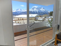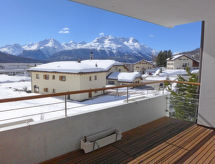 "Chesa Sur Puoz 7", 3 rom leilighet 95 m2 i 1st etasje. Romlig og lys, komfortabelt og moderne møbler: stue/spisestue med panoramavindu med, TV (flatskjerms TV). Utgang til balkongen. 1 dobblet rom med, 1 dobbeltseng (1 x 160 cm, lengde 200 cm). 1 rom med 2 senger (95 cm lengde 200 cm). Åpent kjøkken (stekeovn, oppvaskmaskin, 4 keramiske kokeplater, frys, elektrisk kaffemaskin, Internet(Nespresso), ekstra). Bad/bidé/WC, dusj/WC. Oppvarming. Tregulv, naturstengulv. Terrassemøbler (2). Hærlig panoramautsikt av fjellene og området. Fasiliteter: strykejern, hårføner. Internett (trådløs LAN [WLAN], gratis). Garasje plass nr 14 på tomten (1 Bil), høyde 235 cm, bredde 310 cm. Vennligst merk: røykfri bolig, røykfritt hus. Max kjæledyr / hund tillatt 1 kjæledyr / hund tillatt. Forbruket av røykere er forbudt. En tørketrommel er tilgjengelig.- Kjennetegn ved boligen