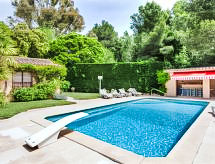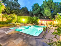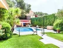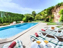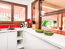 Tamariu: Fin, koselig villa "Chez Noux". Boligområde, 1.5 km fra stranden. Privat: vakker hage for avslappning, svømmebasseng kantete, inngjerdet (10 x 5 m, Sesongåpent: 01.Mai. - 15.Okt.) med innebygde trapper og bassengrensningssystem med saltelektrolyse. Utendørs dusj, bassenghus med kjøleskap, bordtennis, pergola, terrasse, hagemøbler, grill. Sandstrand "Playa de Tamariu" 500 m. Golfbane 13 km. Grupper med tenåringer- bare ved forespørsel. Eiendommen ligger i et attraktivt seilområde. Nyt den behagelige lokasjonen med vindkraft.Interior