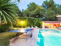 "Chez Noux", 4 rom villa 220 m2. Smakfullt møbler: stue/spisestue med, satelit-TV og internasjonale TVkanaler (flatskjerms TV). Utgang til sitteplass i hagen, til badebassenget. 2 rom, hvert rom med 2 senger (90 cm lengde 190 cm). 1 rom med, 1 dobbeltseng (200 cm, lengde 200 cm). Kjøkken (4 kokeplater, stekeovn, oppvaskmaskin, brødrister, vannkoker, mikrobølgeovn, frys, elektrisk kaffemaskin). Bad/bidé/WC, dusj/WC. Oppvarmingsalternativ. Stor terrasse, sitteplass i hagen. Terrassemøbler, grill, liggestoler, overbygd balkong. Delvis god utsikt av havet og landskapet. Fasiliteter: vaskemaskin. Internett (trådløs LAN [WLAN], gratis). Velegnet for familier. HUTG-038972 Den har oppvaskmaskin. Et privat basseng er tilgjengelig. Hvis været ikke spiller, er det også en TV. Et bordtennisbord er tilgjengelig.- Aktiviteter i nærheten