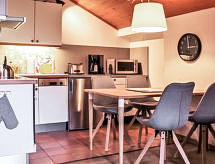 3 rom leilighet 50 m2 i 1st etasje. Komfortabelt møbler: stue/spisestue med, 1 dobbel sovesoffa og satelit-TV. Utgang til balkongen. 1 dobblet rom. 1 rom med, 1 x 2 køysenger. Åpent kjøkken (ovn, oppvaskmaskin, 4 induksjonskomfyr). Dusj/WC. Balkong. Balkongmøbler. Meget vakker utsikt av fjellene. Parkeringsplass (1 Bil) ved hbrukt. Vennligst merk: røykfritt hus. Max kjæledyr / hund tillatt 1 kjæledyr / hund tillatt. Røykvarsler. The apartment has partically some sloping ceilings. Det er en terrasse. Egnet for grilling. En oppvaskmaskin er tilgjengelig. Et bordtennisbord er tilgjengelig.- fasiliteter