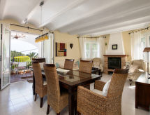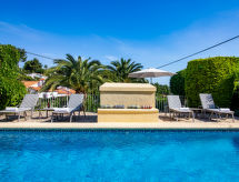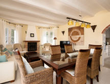 Stor, fin, komfortabel hus "Cindy". I området 4 km fra sentrum av Dénia, i en roligt, solrikt posisjon, 2 km fra sjøen, 2 km fra stranden. Privat: stor, vakker, velholdt hage i flere nivåer, svømmebasseng kantete (8 x 4 m, dybde 80- 210 cm dyp, Sesongåpent: 01.Jan. - 31.Des.) med innebygde trapper. Utendørs dusj, hagemøbler, grillhus, parkering på tomten. Butikk 2 km, supermarked 3 km, bar 1 km, sandstrand "La Marineta" 1.5 km. Sporthavn 2.5 km, golfbane 7 km, surfeskole 2.5 km, seileskole 2.5 km, tennis 5 km. Eieren godtar ikke noen ungdomsgrupper.Interior