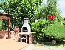 "Cinuzza Grande", 3 rom leilighet 100 m2, på bakkeplan. Romlig, komfortabelt og rustikt møbler: stor stue/spisestue med, 1 sovesoffa, åpen peis, spisebord og satelit-TV. Utgang til hagen. 1 dobblet rom med, dusj/bidèt/WC. 1 rom med 2 senger. Åpent kjøkken (4 kokeplater, stekeovn, mikrobølgeovn) med spisebord. Utgang til hagen. Dusj/bidé/WC. Stor terrasse dekt. Fasiliteter: strykejern, myggnett, hårføner. Kjæledyr / hund tillatt 1 kjæledyr / hund tillatt. Med inngjerdet tomt. Huset er også utstyrt med peis. Huset er også utstyrt med parkeringsplass.- fasiliteter