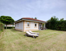 "Quadrato", 4 rom bungalow 85 m2. Komfortabelt møbler: inngang med, separat WC. Stue/spisestue med, spisebord, TV og internasjonale TVkanaler (flatskjerms TV). Utgang til hagen, til terrassen. 1 dobblet rom med 2 senger og TV (flatskjerms TV). 2 rom, hvert rom med 1 seng. Koffertrom. Åpent kjøkken (4 kokeplater, stekeovn, oppvaskmaskin, brødrister, vannkoker, mikrobølgeovn, elektrisk kaffemaskin). Bad/dusj/WC. Oppvarming. Terrassemøbler. Fasiliteter: vaskemaskin, tørketrommel, safe, strykejern. Internett (trådløs LAN [WLAN], gratis). Parkeringsplass (1 Bil) ved hbrukt. Vennligst merk: røykfritt hus. For nyttig informasjon vennligst spør resepsjonen. Håper er en god frokost? Vi er glade for å tilby deg det. Badstuen i huset er stoffskiftet i varmen på trav. Den har et trådløst lokalnettverk (WLAN). Det er en tørketrommel.- Kjennetegn ved boligen