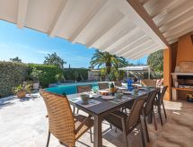 5 rom villa 140 m2 på 2 etasjer. Romlig og lys, meget vakkert møbler: stue/spisestue med, TV (flatskjerms TV). Utgang til terrassen. 1 rom med, 1 dobbeltseng (160 cm, lengde 200 cm), dusj/WC. Utgang til hagen. 1 rom med, 1 dobbeltseng (160 cm, lengde 200 cm), TV (flatskjerms TV). 1 litet rom med, 1 x 2 køysenger (90 cm, lengde 190 cm). Kjøkken (ovn, oppvaskmaskin, 4 induksjonskomfyr, brødrister, vannkoker, mikrobølgeovn, frys, elektrisk kaffemaskin, Internet(Nespresso), ekstra). Dusj, sep. WC. øverste etasje: 1 rom med, 1 dobbeltseng (160 cm, lengde 190 cm), dusj/WC. Airconditioning. Stor terrasse 30 m2 delvis dekt. Terrassemøbler, elektrisk grill, liggestoler (8). Fasiliteter: vaskemaskin, hårføner. Internett (trådløs LAN [WLAN], gratis). Parkeringsplass (3 Biler). Vennligst merk: røykvarsler. 83065000284BD Egnet for grilling. Huset er også utstyrt med oppvaskmaskin. Et basseng er tilgjengelig. Et privat basseng er tilgjengelig.- fasiliteter