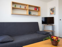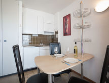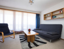 "Combire 405", 1 rom etromsleilighet i 4th etasje. Praktiskt og komfortabelt møbler: stue/soverom med, 1 dobbel sovesoffa (140 cm, lengde 200 cm), 1 neddragbar klappseng (90 cm, lengde 190 cm), TV. Utgang til balkongen. Åpent kjøkken (2 kokeplater, stekeovn, mikrobølgeovn). Bad/WC. Balkong, beliggenhet mot vest. Balkongmøbler. Utsikt av skibakkene. Fasiliteter: Internett (trådløs LAN [WLAN]). Vennligst merk: røykfri bolig. Huset er også utstyrt med balkong. Det er en parkeringsplass. Den har en overbygd parkeringsplass. Et innendørsbasseng er tilgjengelig. Det er en internettforbindelse.- fasiliteter