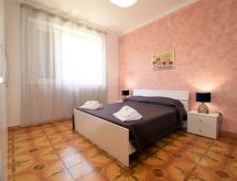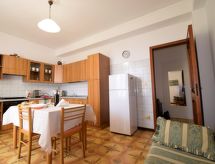 "Conchiglia al Mare", 3 rom leilighet 100 m2, på bakkeplan. Praktiskt og komfortabelt møbler: inngang. 1 dobblet rom med, vifte. 1 rom med 2 senger og vifte. 1 rom med, 1 x 2 køysenger, vifte. Kjøkken/stue (4 kokeplater, ovn, brødrister, vannkoker, mikrobølgeovn, frys, elektrisk kaffemaskin) med spisebord, satelit-TV (flatskjerms TV), air-conditioning. Utgang til balkongen. Dusj/bidé/WC. Oppvarmingsalternativ. Balkong 6 m2, terrasse 25 m2 delvis dekt. Terrassemøbler. Delvis utsikt av havet. Fasiliteter: vaskemaskin, strykejern, myggnett, høy barnestol barneseng for barn opp til 2 år, hårføner. Internett (trådløs LAN [WLAN], gratis).- fasiliteter