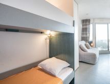 1 rom leilighet 19 m2 i 1st etasje. Inngang med, 1 x 2 køysenger (80 cm, lengde 190 cm). Stue/spisestue med, 1 dobbel sovesoffa (1 x 160 cm, lengde 200 cm), TV (flatskjerms TV). Utgang til balkongen. Kjøkkenkrok (2 induksjonskomfyr, brødrister, mikrobølgeovn, elektrisk kaffemaskin) med, vifte. Bad/WC. Balkong 6 m2, beliggenhet mot vest. Terrassemøbler. Fasiliteter: strykejern. Internett (trådløs LAN [WLAN], ekstra). Vennligst merk: leilighet vend mot parkeringsplassen. Max kjæledyr / hund tillatt 1 kjæledyr / hund tillatt. Røykvarsler. Residence. Du kan ta heisen til gulvet i leiligheten.- Kjennetegn ved boligen