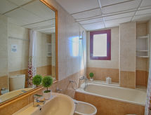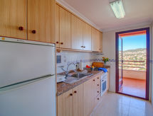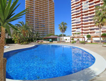 Playa de Levante: Leilighetshus "Coral Beach", med 22 etasjer. 3 km fra sentrum av Calpe, 100 m fra sjøen. Fellesbruk: tomt (inngjerdet), 3 badebasseng (Sesongåpent: 01.Jan. - 31.Des.). Dusj/WC ved bassenget, barnebasseng, utendørs dusj, terrasse. I hbrukt: trådløst LAN [WLAN], heis. Supermarked, restaurant, bar 100 m, sandstrand 150 m, badebukt 300 m. Golfbane(9 hull) 12 km, tennis 3 km. Attraksjoner i nærheten: Aqualandia, Mundomar, Terra Mítica, Terra Natura, Benidorm Palace (Benidorm).Interior