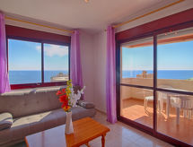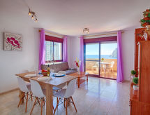 "Coral Beach", 3 rom leilighet 70 m2. Praktiskt og komfortabelt møbler: stue/spisestue med, digital TV. Utgang til terrassen. 1 rom med, 1 dobbeltseng og bad/bidèt/WC. 1 rom med 2 senger. Kjøkken (stekeovn, 4 gassbrennere, brødrister, vannkoker, mikrobølgeovn, elektrisk kaffemaskin). Utgang til terrassen. Dusj/bidé/WC. Oppvarmingsalternativ. Stor terrasse. Terrassemøbler. Vakker utsikt av havet og byen. Fasiliteter: vaskemaskin, strykejern, høy barnestol barneseng for barn opp til 2 år, hårføner. Garasje. AT-438397-A Praktisk med heisen til inngangsdøren. Overrasket med en fantastisk utsikt over havet. En parkeringsplass er tilgjengelig. Det er et barnebasseng. En mikrobølgeovn er også tilgjengelig. Den har en komfyr.- Aktiviteter i nærheten
