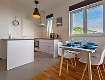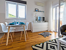 "Cvit 1", 3 rom leilighet 54 m2 i 1st etasje, beliggenhet mot sør. Vakkert og moderne møbler: stue/spisestue 24 m2 med, 1 dobbel sovesoffa og satelit-TV (flatskjerms TV), air-conditioning. Utgang til balkongen. 2 rom, hvert rom med, 1 dobbeltseng (160 cm, lengde 200 cm). Åpent kjøkken (ovn, oppvaskmaskin, 4 keramiske kokeplater, frys, elektrisk kaffemaskin). Dusj/WC, sep. WC. Balkong 8 m2. Balkongmøbler. Vakker utsikt av havet. Fasiliteter: høy barnestol barneseng. Internett (trådløs LAN [WLAN], gratis). Parkeringsplass (1 Bil). Max 1 lite kjæledyr / liten hund tillatt. Overrasket med en fantastisk utsikt over havet. Klimaanlegget sørger for god romtemperatur. Fordi den følelsesvennlige faktoren spiller en viktig rolle og er viktig for oss.- fasiliteter