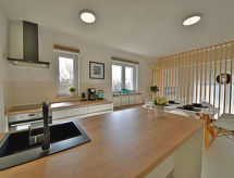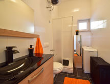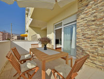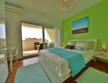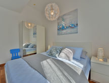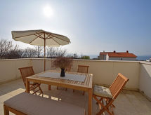 "Cvit 2", 3 rom leilighet 73 m2, på bakkeplan, beliggenhet mot sør. Vakkert og moderne møbler: stue/spisestue 33 m2 med, 1 dobbel sovesoffa (140 cm, lengde 220 cm), satelit-TV (flatskjerms TV), air-conditioning. Utgang til terrassen. 1 rom med, 1 dobbeltseng (160 cm, lengde 200 cm). 1 rom med, 1 dobbeltseng (160 cm, lengde 200 cm), air-conditioning. Utgang til terrassen. Åpent kjøkken (ovn, oppvaskmaskin, 4 keramiske kokeplater, frys, elektrisk kaffemaskin). 2 dusjer/WC. Terrasse 10 m2 delvis dekt, terrasse 8 m2, med tak. Terrassemøbler. Delvis utsikt av havet. Fasiliteter: vaskemaskin, høy barnestol barneseng, hårføner. Internett (trådløs LAN [WLAN], gratis). Parkeringsplass (1 Bil). Max 1 lite kjæledyr / liten hund tillatt. Huset er også utstyrt med barneseng. Parkering er tilgjengelig. Du er mer selvstendig med den spesielle vaskemaskinen.- fasiliteter