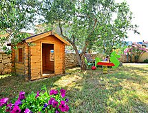 3 rom leilighet 60 m2. Med skråtak, moderne og koseligt møbler: toppetasje: stue/spisestue, Lav dørhøyde 160 cm 260 cm med, 1 sovesoffa, satelit-TV, flatskjerms TV, DVD og air-conditioning. Utgang til terrassen. 1 rom Lav dørhøyde 160 cm 260 cm med, 1 dobbeltseng (160 cm, lengde 200 cm). 1 rom Lav dørhøyde 160 cm 260 cm med 2 senger (90 cm lengde 200 cm). Åpent kjøkken (oppvaskmaskin, 2 keramiske kokeplater, mikrobølgeovn, frys) med, air-conditioning. Dusj/WC. Airconditioning (ekstra). Terrasse 8 m2. Terrassemøbler. Utsikt av havet. Fasiliteter: vaskemaskin, safe. Internett (trådløs LAN [WLAN], gratis). Eiendommen er helt inngjerdet. Utsikt over havet og beliggenheten er nydelig. Lekeplassen, som er egnet for barn, er tilgjengelig. En oppvaskmaskin er tilgjengelig. Huset er også utstyrt med en DVD-spiller.- fasiliteter